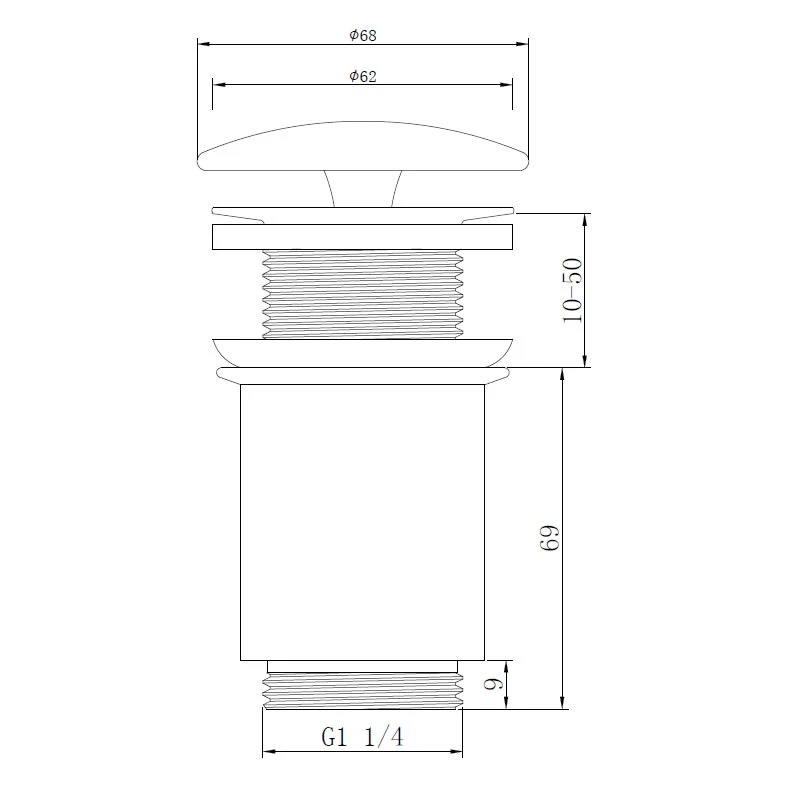 Kronenbach Ablaufventil Schaftventil rund, lang, keramische Abdeckung