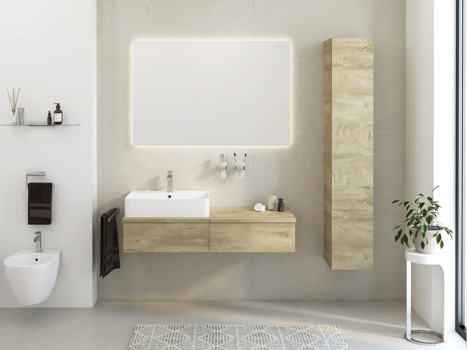 - Front: Holzwerkstoffkern mit beidseitiger Melaminharzbeschichtung und umlaufender Kunststoffdickkante
