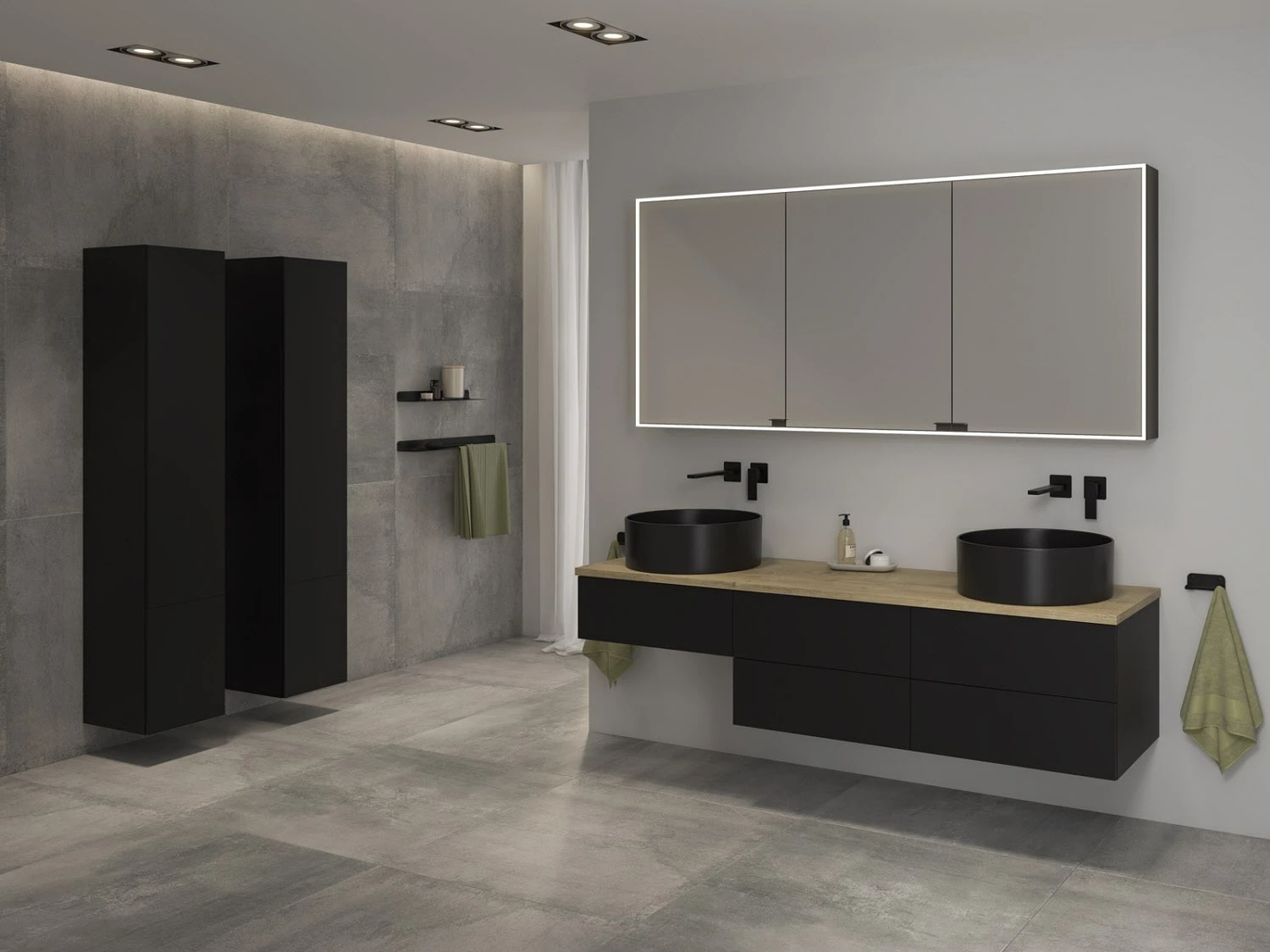 - Front: MDF-Kern mit Melaminharzdirektbeschichtung, Vorderseite zusätzlich mit einem Mattlack und einer speziellen Anti-Fingerprint Beschichtung versehen, Kanten umlaufend mit einer Kunststoffdickkante belegt