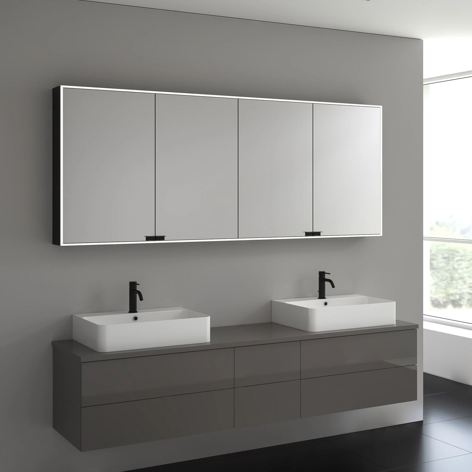 Kronenbach Cube Spiegelschrank 200 x 80 cm mit umlaufender LED-Beleuchtung, Aufputz
