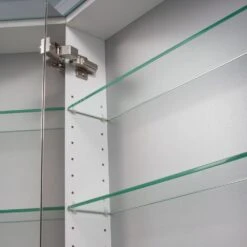 Für die Waschtischunterschränke wird ein Ganzmetallbeschlag verwendet. Der Verstellbereich beträgt horizontal 19 mm und vertikal 22 mm.