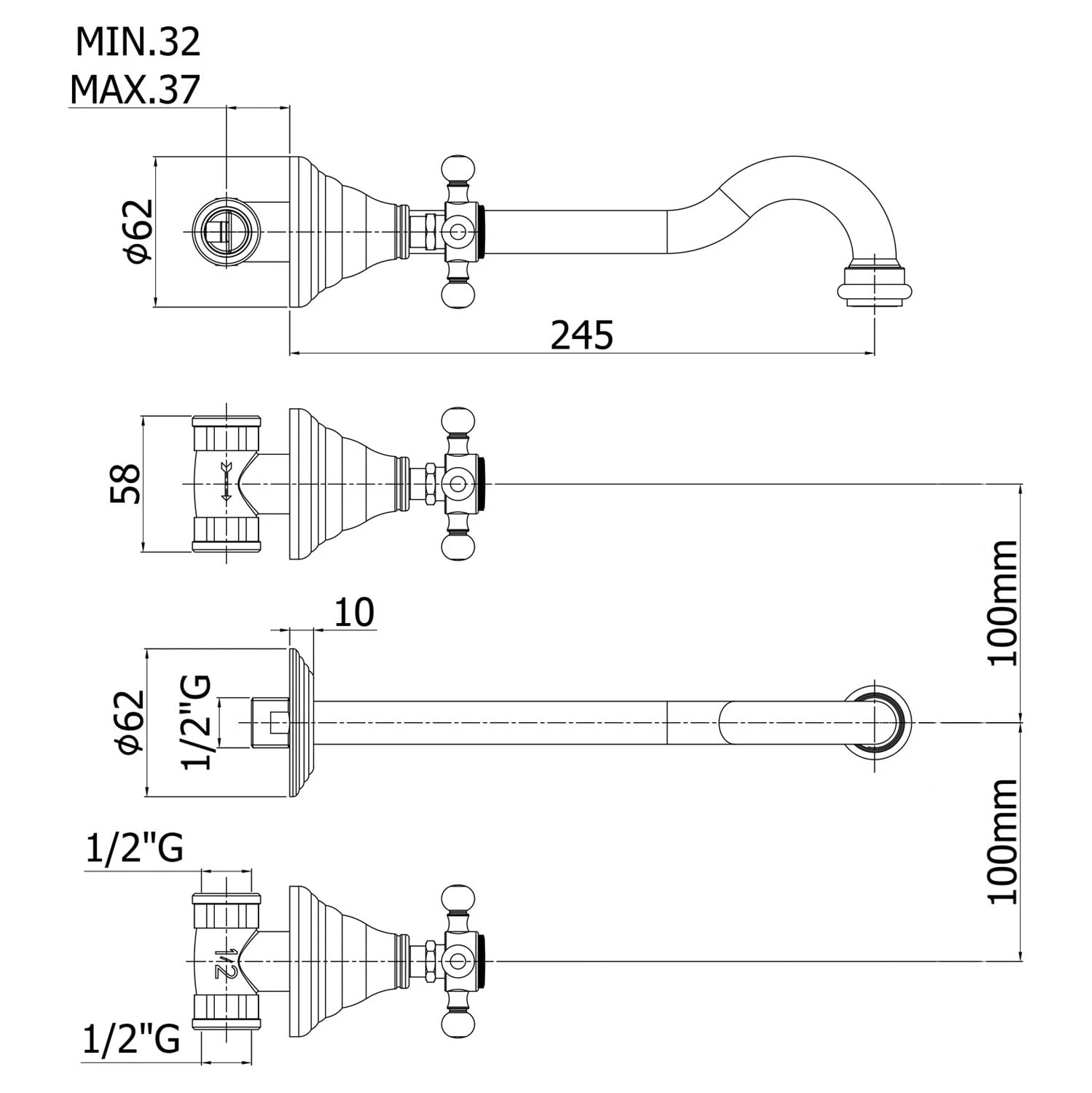Kronenbach IOTA 2.0 Dreiloch-Waschtisch-Wandarmatur 24,5 cm