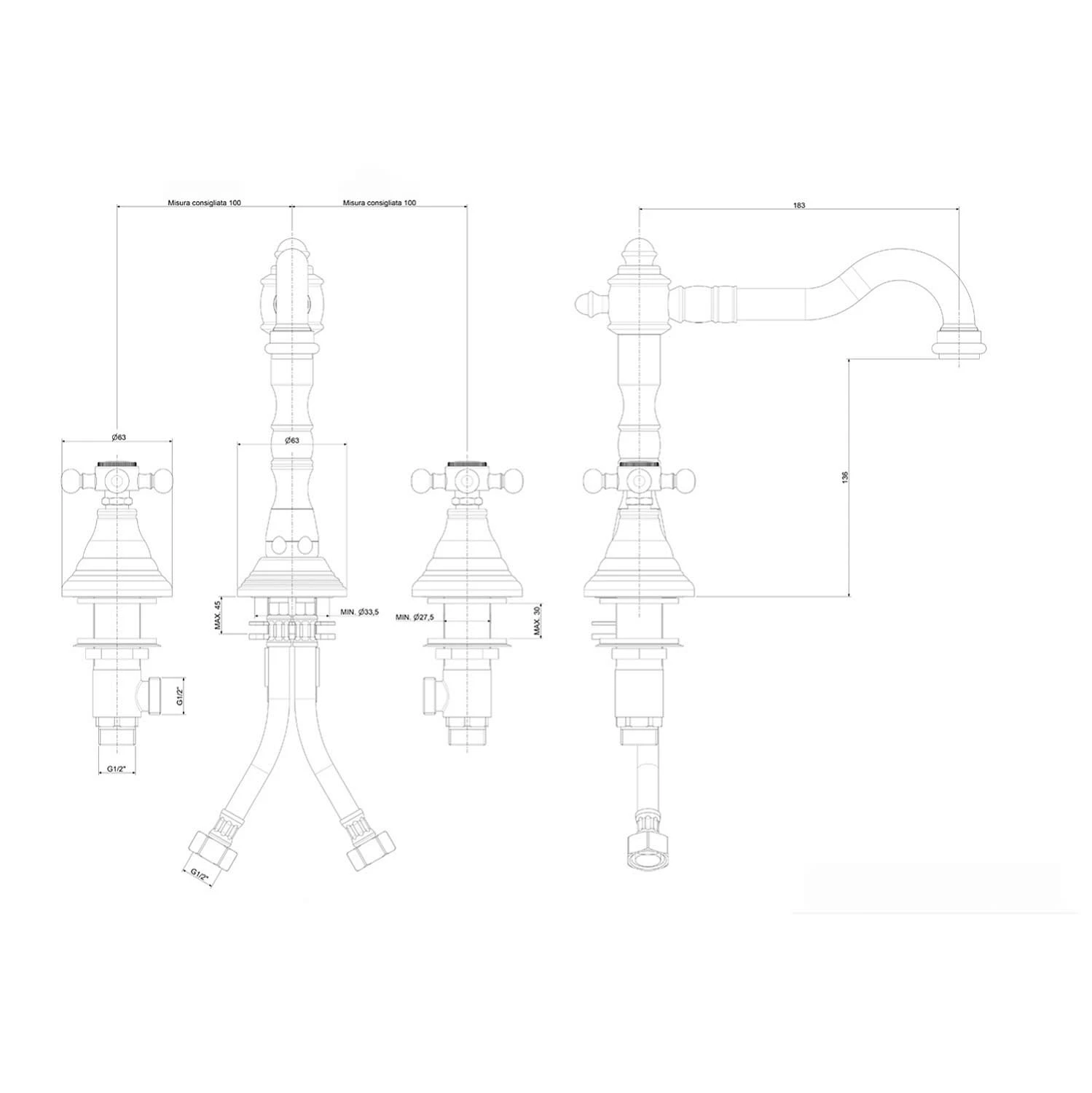 Kronenbach IOTA 2.0 Dreiloch-Waschtischarmatur ohne Ablaufgarnitur