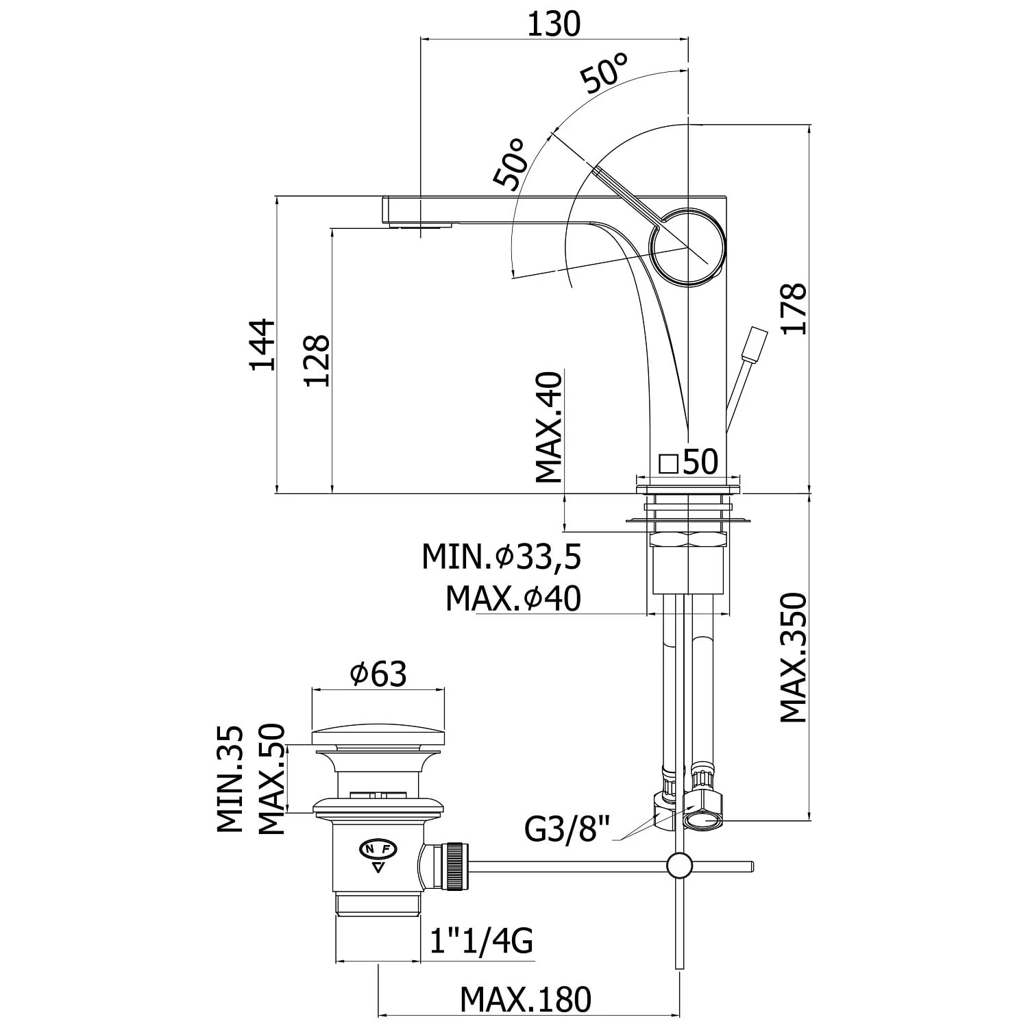 | Ausführung | ohne Ablaufgarnitur, XXL für Schalenbecken, mit Ablaufgarnitur 1 1/4" |