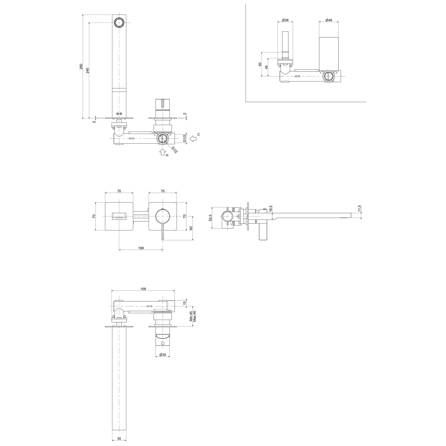 Kronenbach Krona 2.0 Waschtisch-Wandarmatur Ausladung 24 cm inkl. Grundkörper