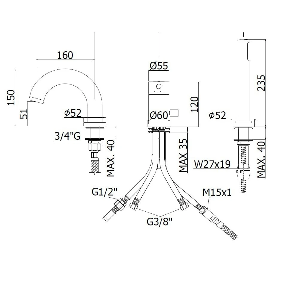 Kronenbach Lima 2.0 Black 3-Loch Wannenrandarmatur