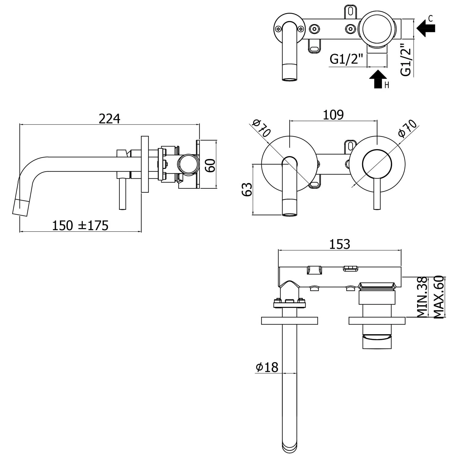 Kronenbach Lima 2.0 Black Waschtisch-Wandarmatur 17,5 cm inkl. Grundkörper