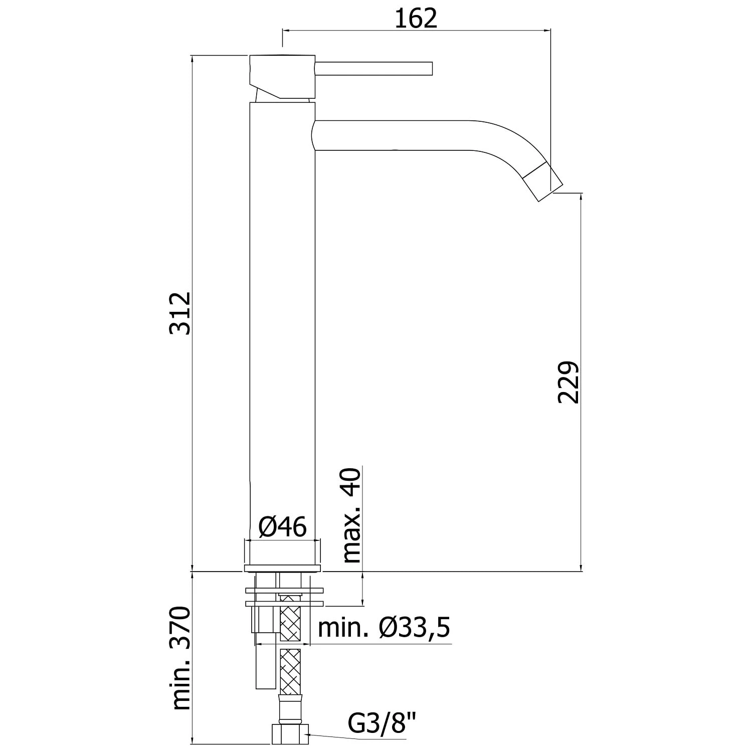 - mit flexiblen Edelstahl-Anschlussschläuchen 3/8″ DVGW zertifiziert (KTW zugelassen) 45 cm