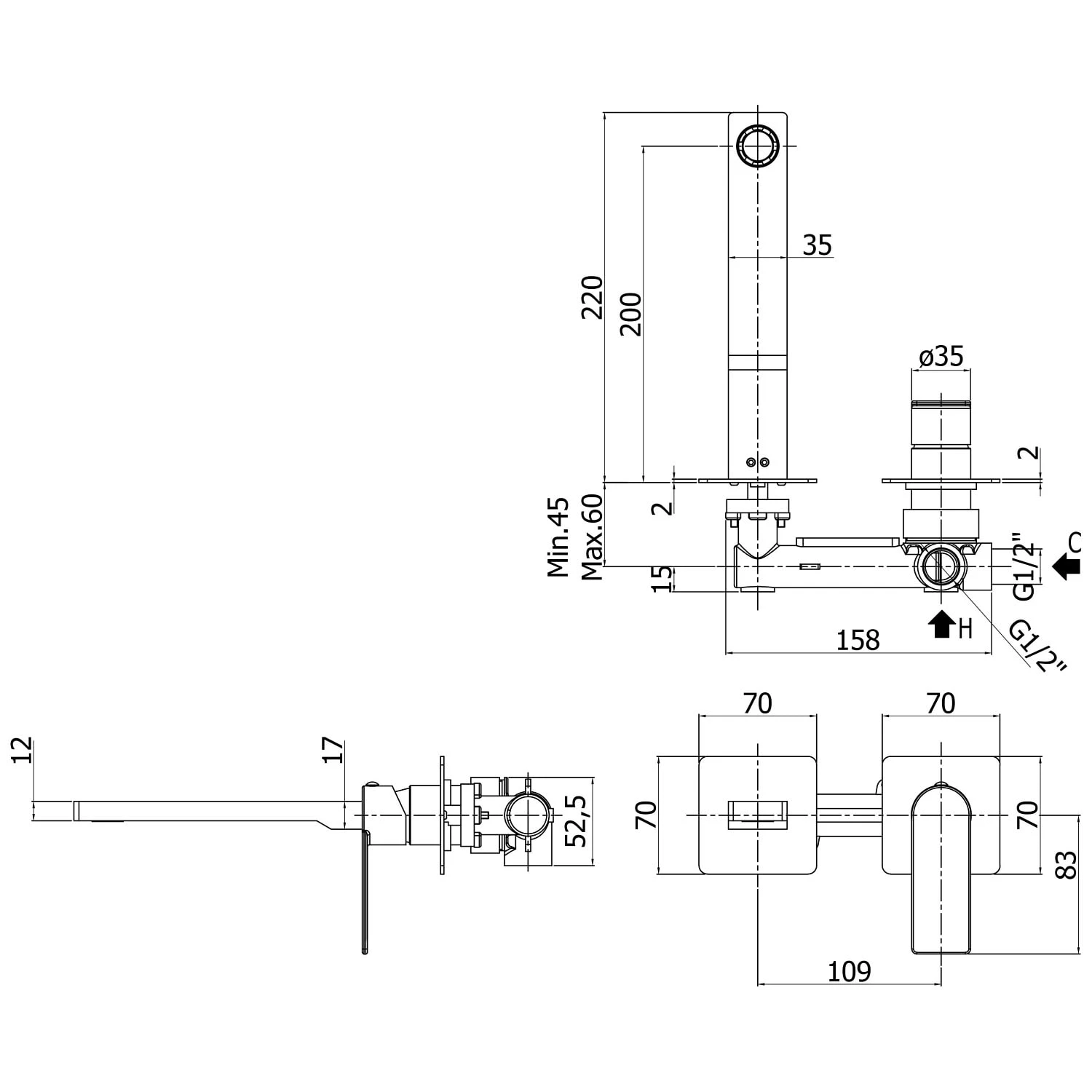 Kronenbach Omega 2.0 Waschtisch-Wandarmatur Ausladung 20 cm inkl. Grundkörper