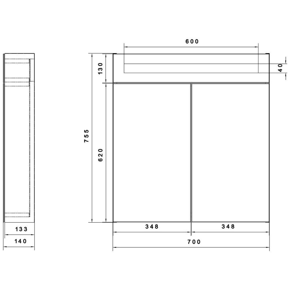 Kronenbach Plana Spiegelschrank 70 x 14 x 75,5 cm, mit 2 Türen und satiniertem Lichtausschnitt oben