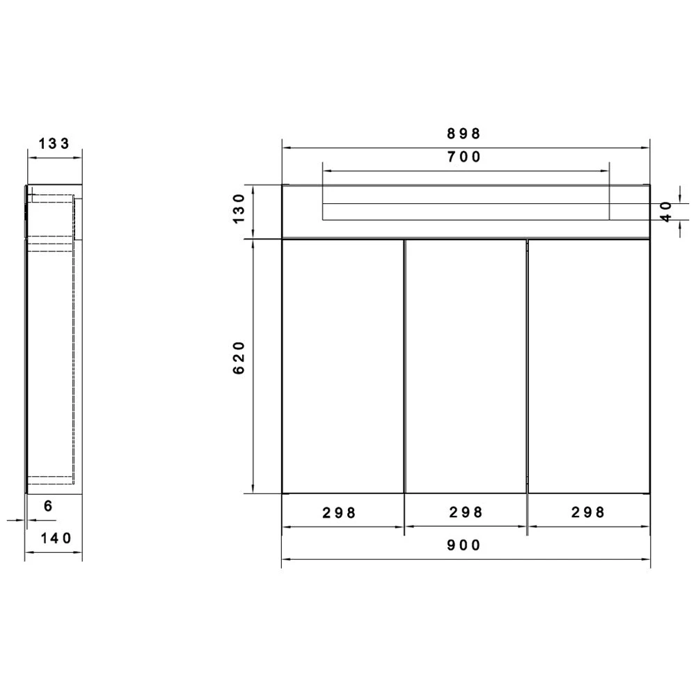 Kronenbach Plana Spiegelschrank 90 x 14 x 75,5 cm, mit 3 Türen und satiniertem Lichtausschnitt oben