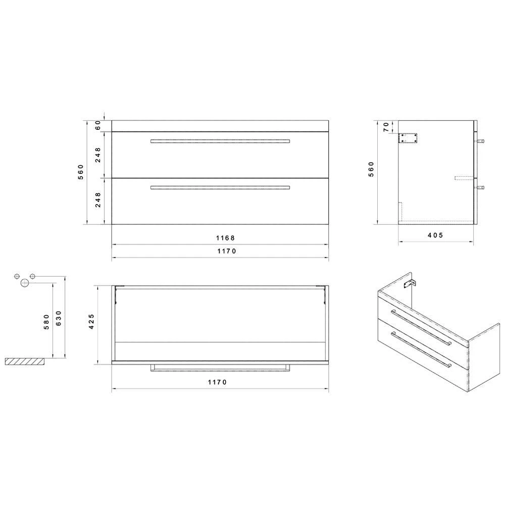 Kronenbach Plana Waschtischunterschrank 120 cm mit 2 Auszügen
