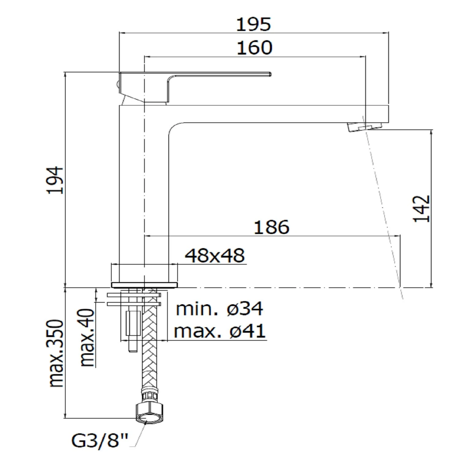 - mit flexiblen Edelstahl-Anschlussschläuchen 3/8″ DVGW zertifiziert (KTW zugelassen) 45 cm