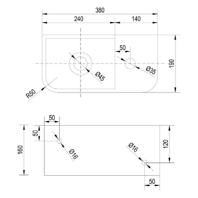 Kronenbach Stone Handwaschbecken 38 x 19 cm mit Handtuchhalterung, Becken links mit Hahnlochbohrung