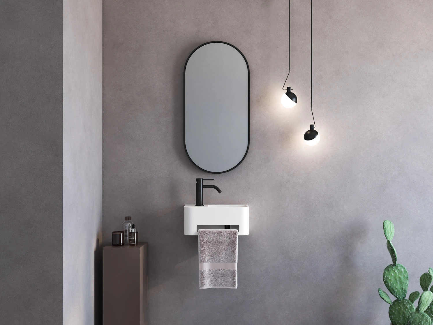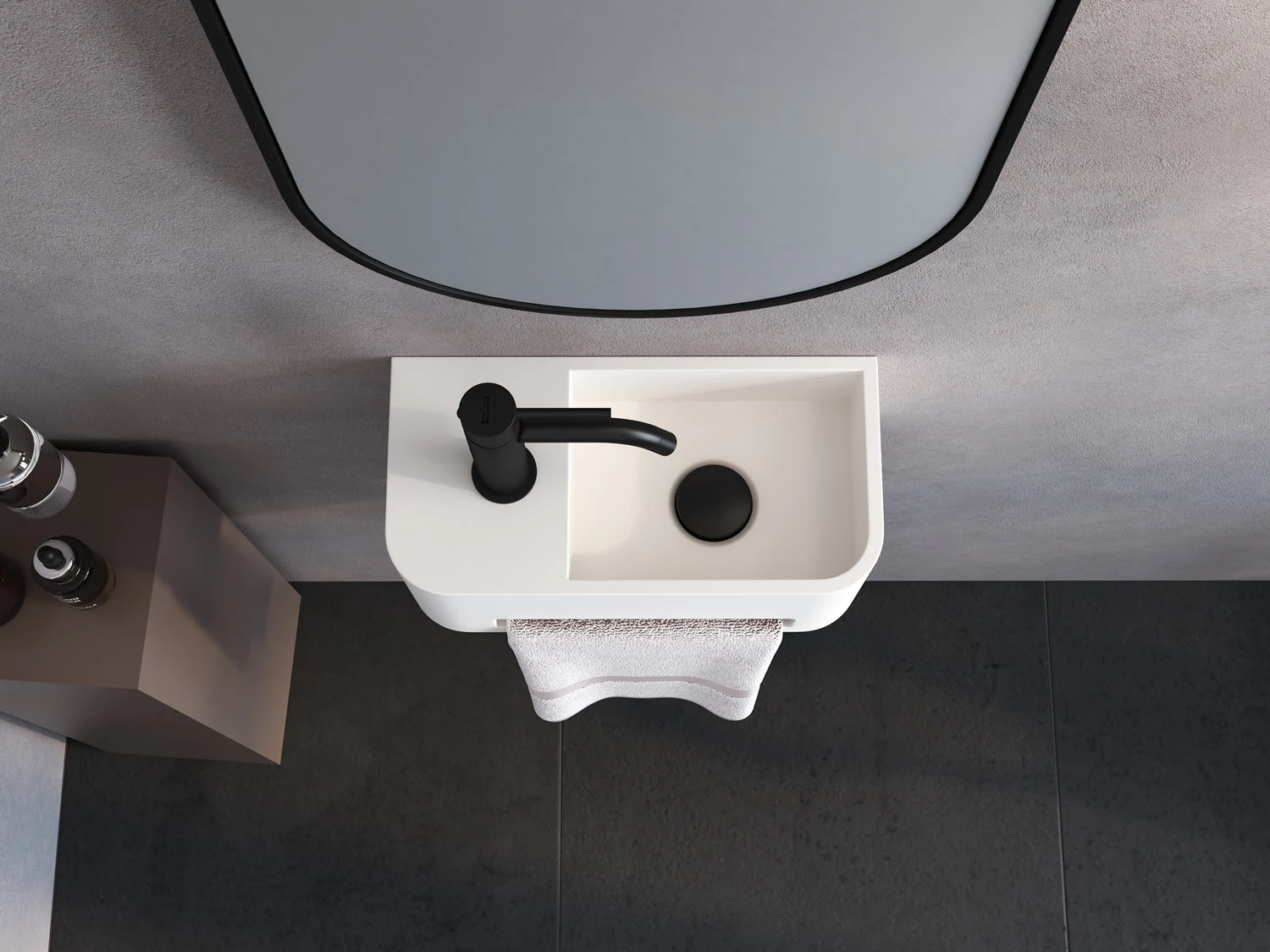 Kronenbach Stone Handwaschbecken 38 x 19 cm mit Handtuchhalterung, Becken rechts mit Hahnlochbohrung
