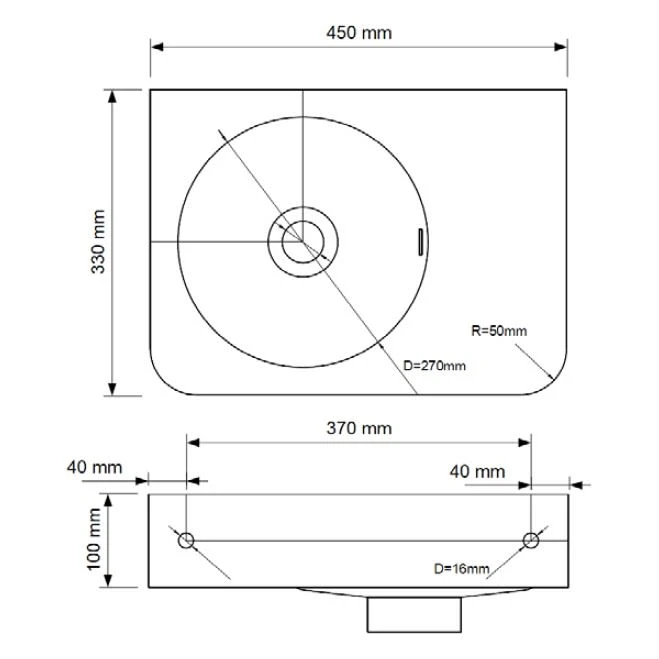 Kronenbach Stone Handwaschbecken 45 x 33 cm, Becken links ohne Hahnlochbohrung