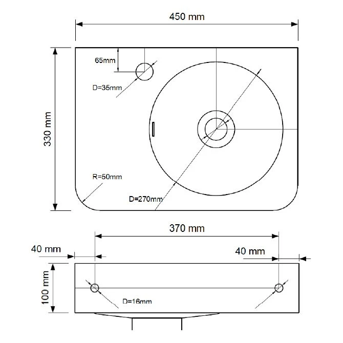 Kronenbach Stone Handwaschbecken 45 x 33 cm, Becken rechts mit Hahnlochbohrung