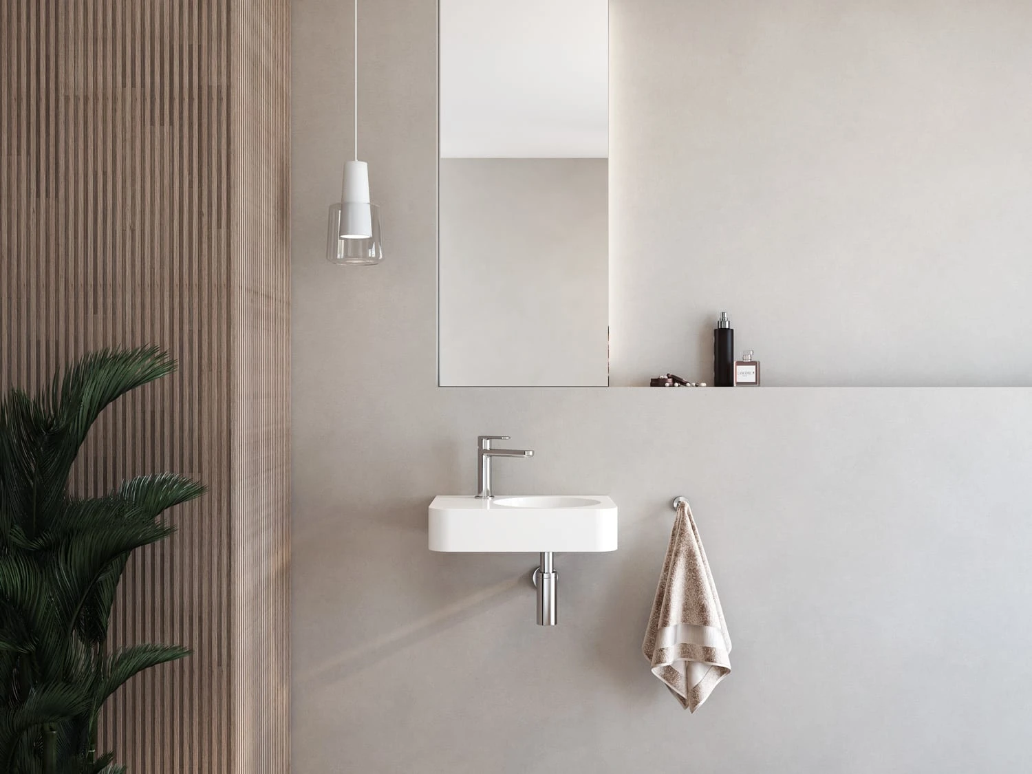 Kronenbach Stone Handwaschbecken 38 X 19 Cm Mit Handtuchhalterung, Becken Links Ohne Hahnlochbohrung