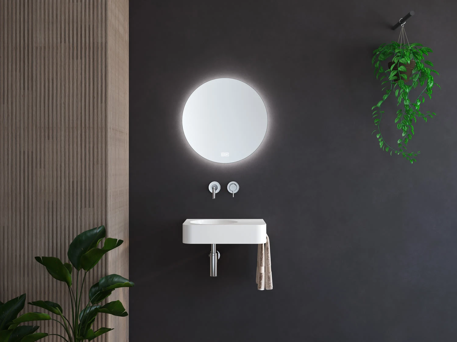 Kronenbach Stone Handwaschbecken 45 x 33 cm mit Handtuchhalterung, Becken links ohne Hahnlochbohrung
