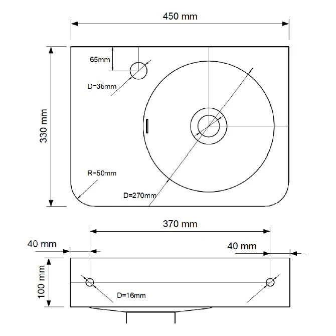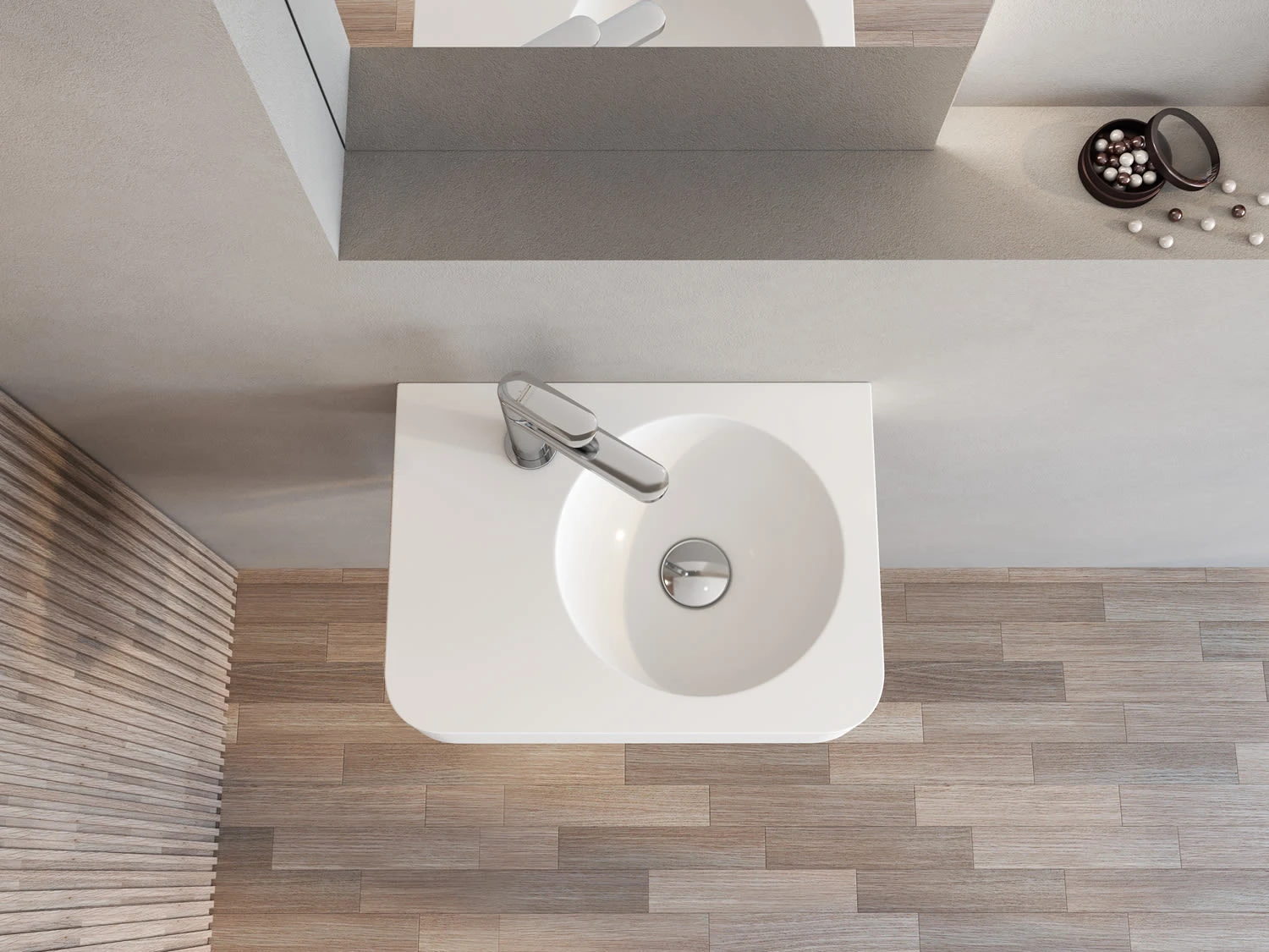 Kronenbach Stone Handwaschbecken 45 x 33 cm mit Handtuchhalterung, Becken rechts mit Hahnlochbohrung