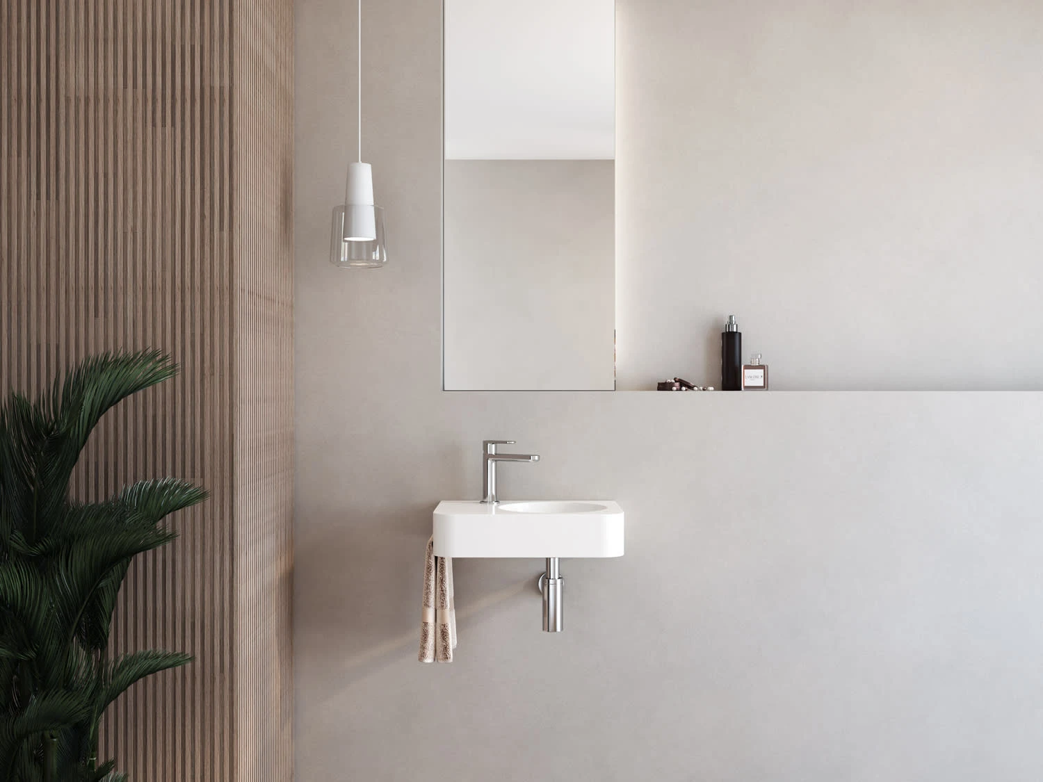 Kronenbach Stone Handwaschbecken 38 X 19 Cm Mit Handtuchhalterung, Becken Links Ohne Hahnlochbohrung