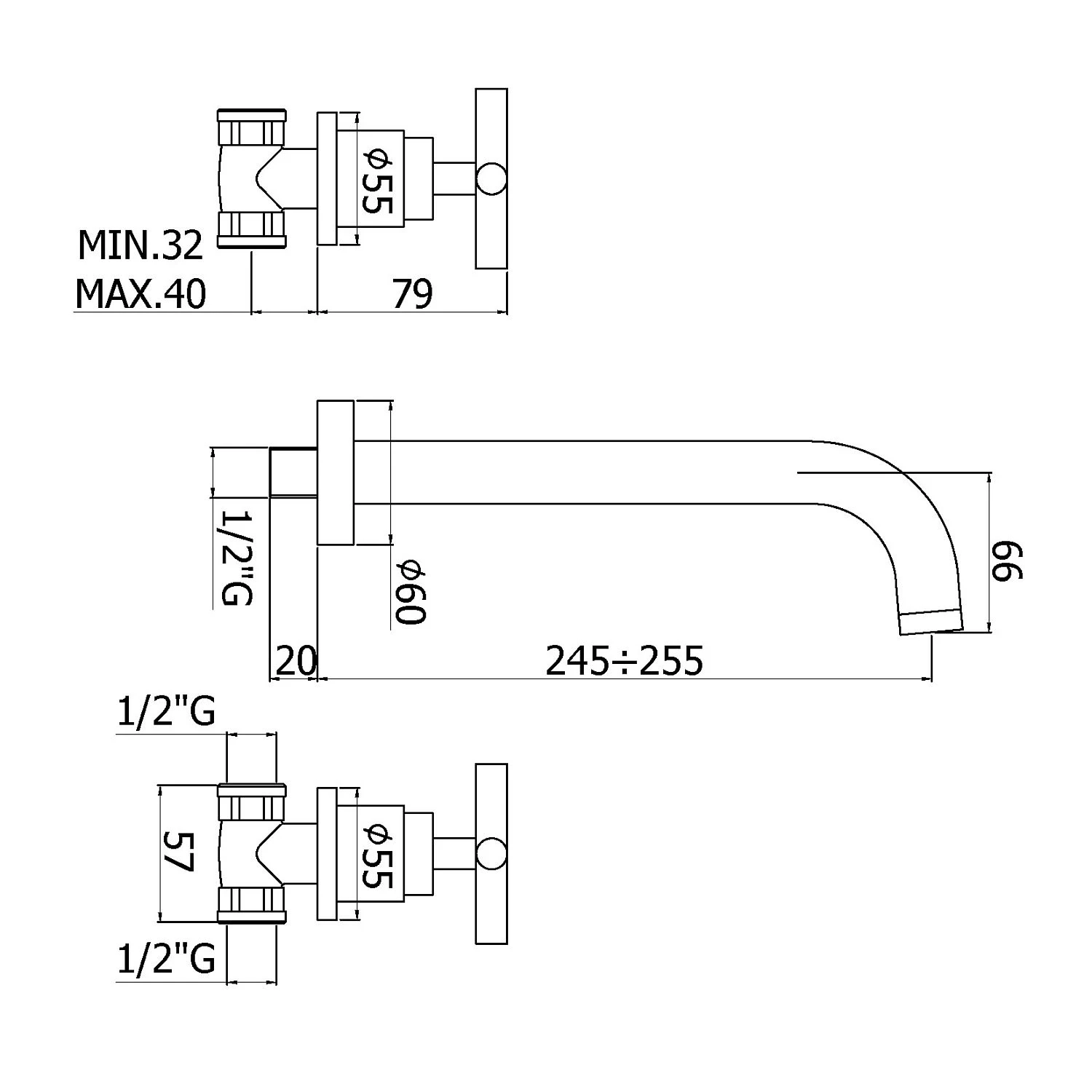 Kronenbach Zeta 2.0 Dreiloch-UP-Waschtischmischer Ausladung 24,5 cm